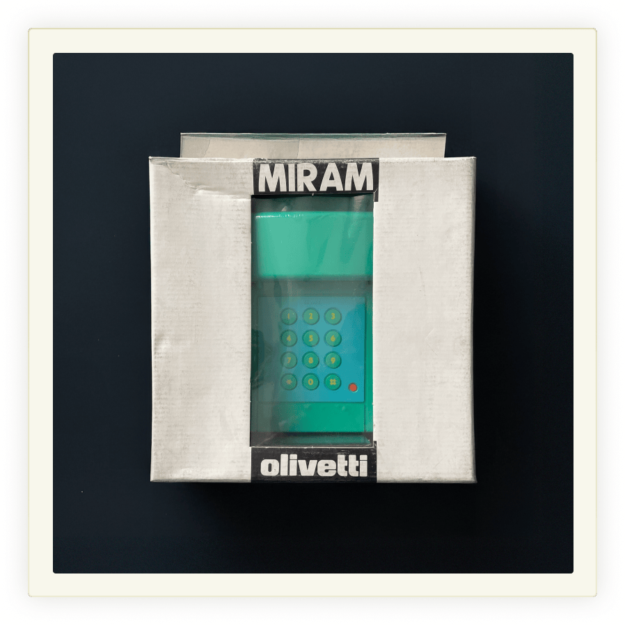 I couldn’t resist but buy myself this beauty: a Miram 100 by Olivetti, complete with its original box. George Sowden designed it in the late 80s, and it challenged something nobody thought to question: why should phones be gray?